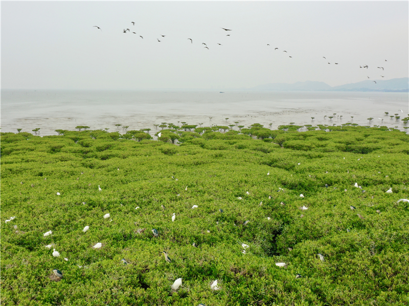 時下正值鷺鳥筑巢繁殖季節(jié),福建省福清市江鏡鎮(zhèn)沿海紅樹林成為白鷺、夜鷺、池鷺等鷺鳥棲息繁衍的場所。