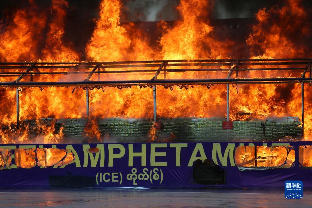 這是6月26日在緬甸仰光拍攝的毒品銷毀活動(dòng)現(xiàn)場(chǎng)。新華社發(fā)(苗覺(jué)梭攝)