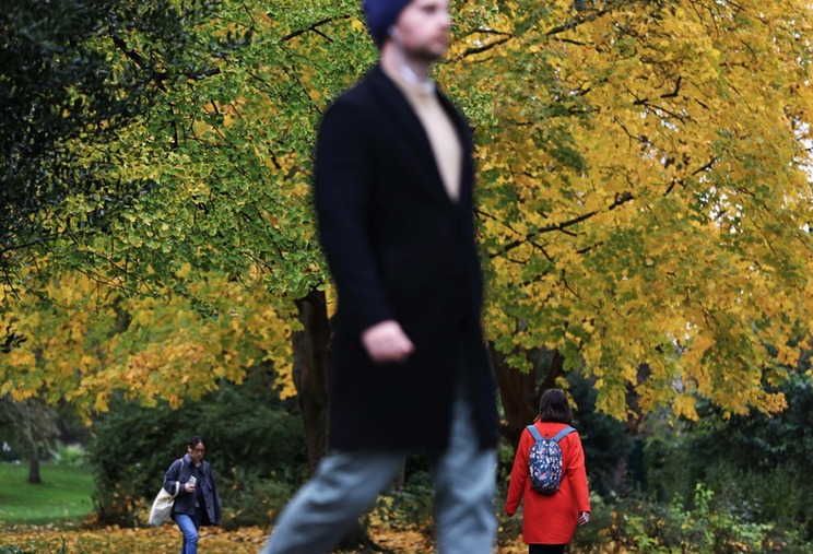 11月12日,人們走在法國巴黎蒙蘇里公園內(nèi)。新華社記者高靜攝