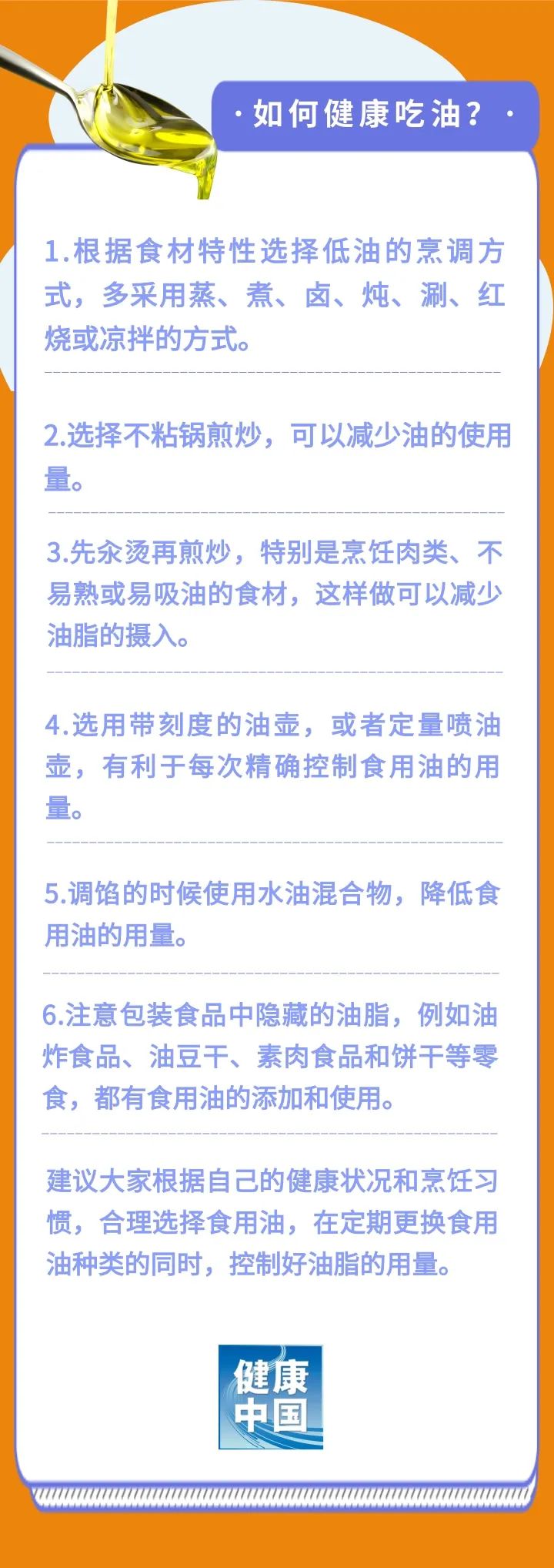 此外,根據(jù)《中國居民膳食指南(2022)》的推薦,每日食用油的攝入量應控制在25~30克。過多攝入食用油,同樣會增加肥胖和血脂異常等慢性病的發(fā)病風險,尤其是高血脂、心腦血管疾病人群,需要進一步控制油的攝入量。盡管動物脂肪也含有不少油酸,但其中更多的是飽和脂肪酸,吃多了對健康不利。所以,無論選用哪種食用油,根據(jù)自身健康狀況控制攝入量,是健康的基本前提。