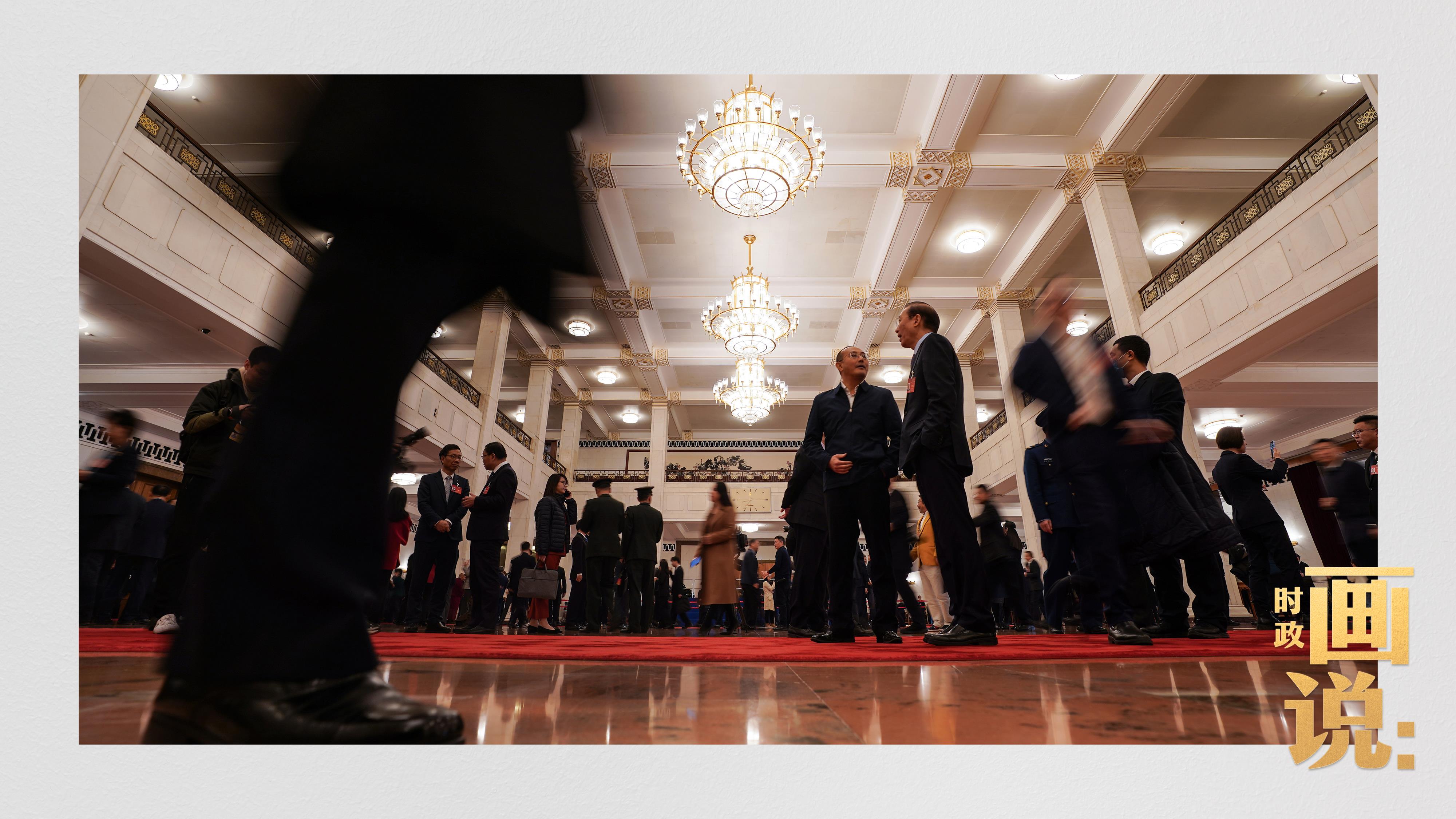 △代表、委員們步入會場,靜謐的東大廳一時間人流涌動。