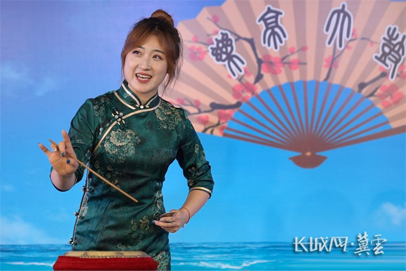 國家級非遺項目樂亭大鼓第八代傳人曾麗正在表演樂亭大鼓。長城網(wǎng)·冀云客戶端記者 馮立華 攝