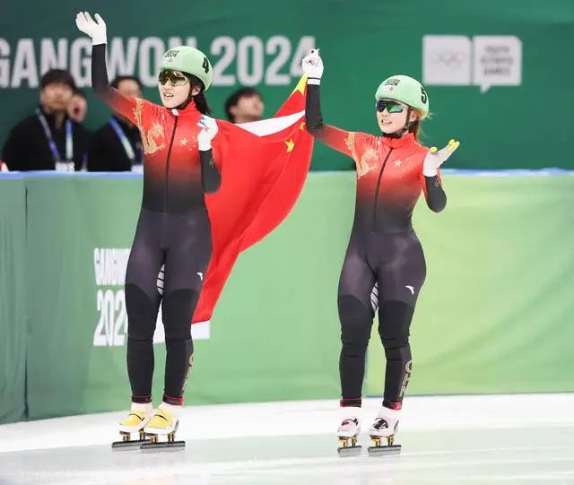1月21日,李金恣(左)和楊婧茹在比賽后慶祝。新華社記者 姚琪琳 攝