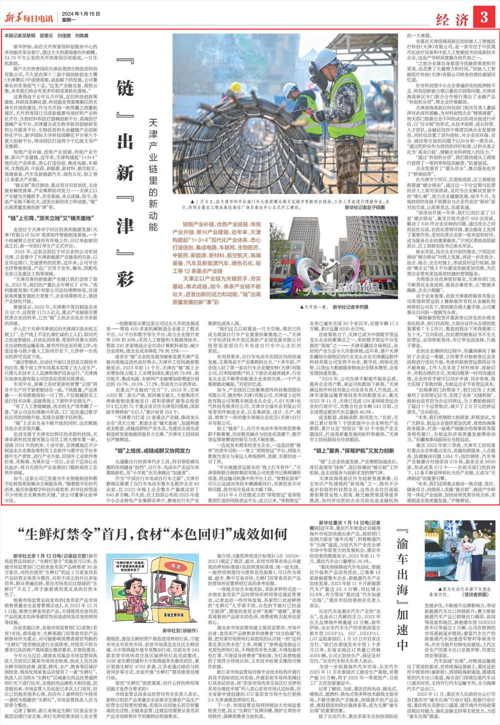 “天津完善的新能源產(chǎn)業(yè)鏈讓我們嘗到了甜頭,2023年,我們的產(chǎn)量比去年增長了47%!庇⒗茉窗l(fā)展(天津)有限公司總經(jīng)理韓帥說,在國家高質(zhì)量發(fā)展的大背景下,企業(yè)將乘勢而上,推進(jìn)產(chǎn)業(yè)綠色升級。