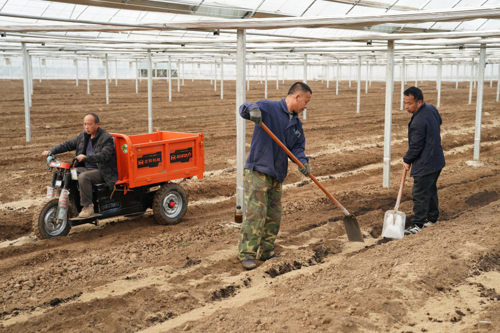 3月6日,在西安市長安區(qū)杜曲街道的一處農(nóng)業(yè)產(chǎn)業(yè)園,工作人員在對種植茶樹的大棚進(jìn)行土壤改良。新華社記者邵瑞 攝