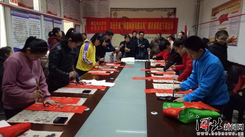 當日,蓮池區(qū)紀委和社區(qū)工作人員將“廉潔齊家樹新風”倡議書發(fā)給了參與活動的黨員和居民,倡導大家樹立良好家風、弘揚家庭美德、筑牢反腐防線,將每一個家庭建設(shè)成為廉潔、平安、溫馨的港灣;顒又,來自書法學校的老師和學生們揮毫潑墨,書寫出一幅幅春聯(lián),同時也將自己的新年祝福寄托在這些春聯(lián)中。