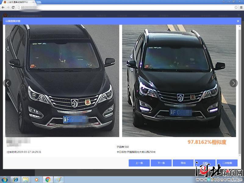 5月29日下午,保定市公安局交警支隊情報中心民警正在利用大數(shù)據(jù)分析研判手段處理機動車嚴(yán)重涉牌違法行為。這時,系統(tǒng)提示號牌為冀F9***M的機動車可能存在違法行為。民警立即將該車信息與數(shù)據(jù)庫中車輛信息進行比對,發(fā)現(xiàn)該車與冀FC***0的機動車相似度為97.8162%,經(jīng)過民警的進一步分析,確定上述兩車實為同一輛車,該車涉嫌使用偽造的機動車號牌。隨即,民警對該車開出罰單,罰單在系統(tǒng)中自動生效。