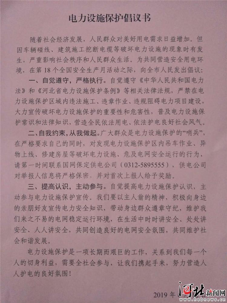 國(guó)網(wǎng)保定供電公司向社會(huì)發(fā)起“電力設(shè)施保護(hù)倡議書(shū)”