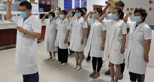 圖為昌盛醫(yī)院醫(yī)護(hù)人員在莊嚴(yán)宣誓:健康所系,生命相托我將竭盡全力……