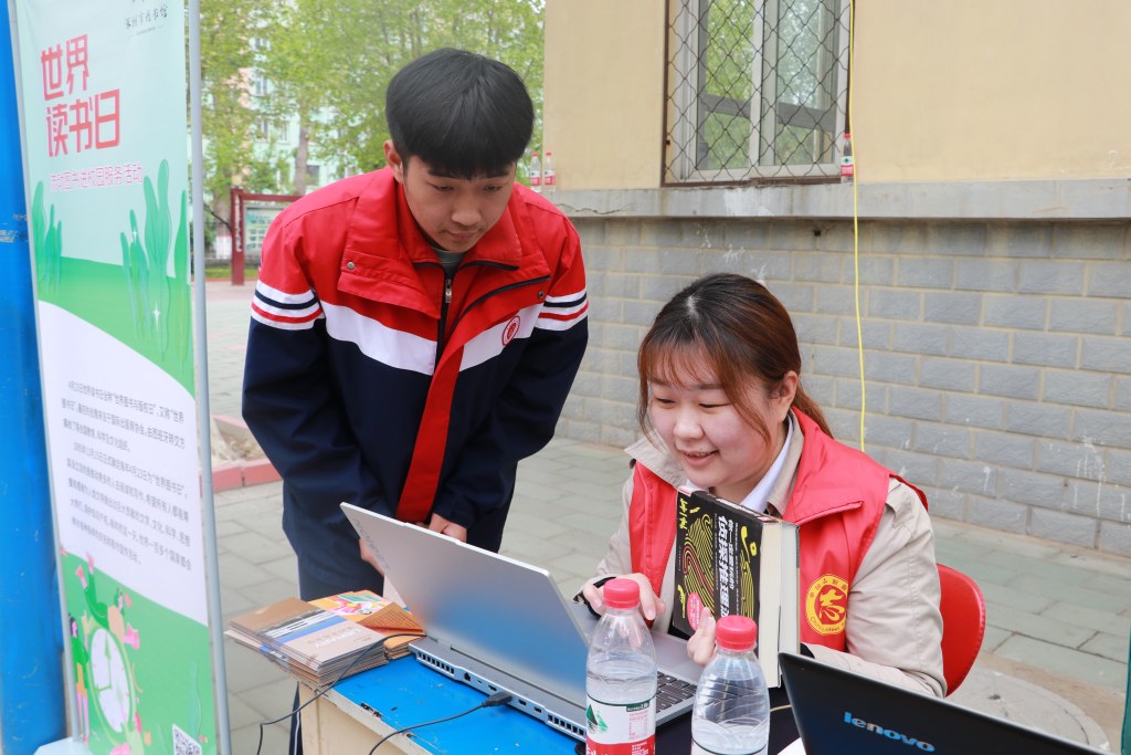 涿州市圖書館工作人員為學生辦理電子借書卡。劉奕攝