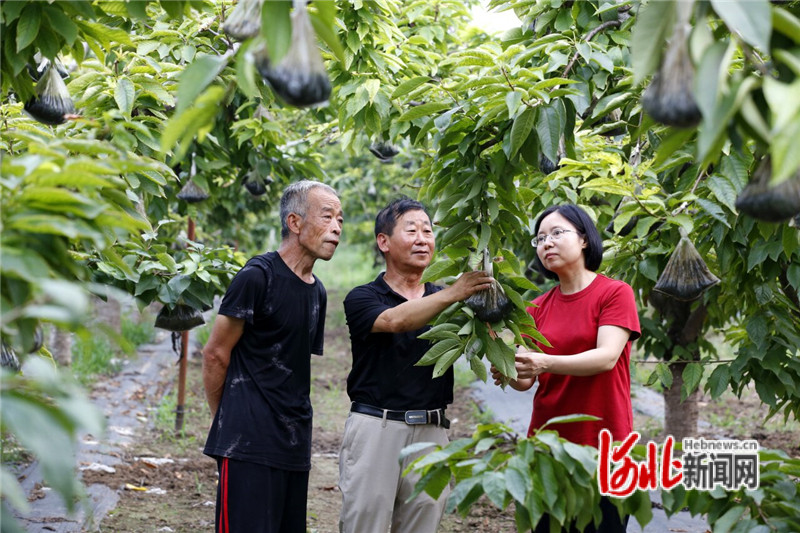 9月15日,農(nóng)業(yè)科技特派員郜福祿(中)在滿城區(qū)龍門山莊對果樹管理進行指導(dǎo)。河北日報通訊員田素然攝