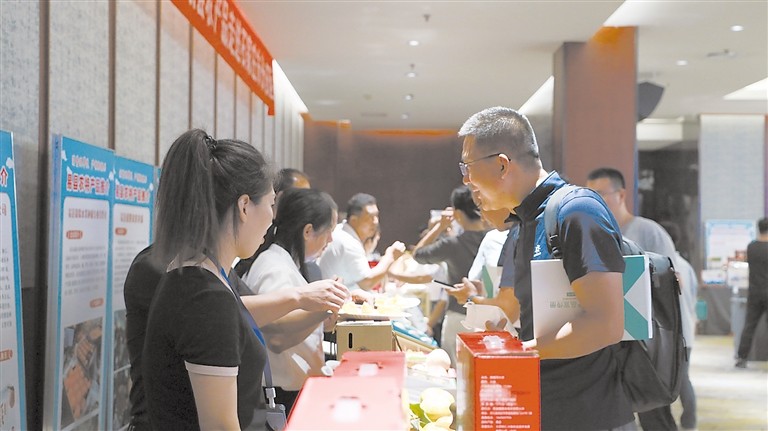 產(chǎn)銷對接會上,來自易縣的農(nóng)優(yōu)產(chǎn)品深受采購商青睞。張仕儒攝