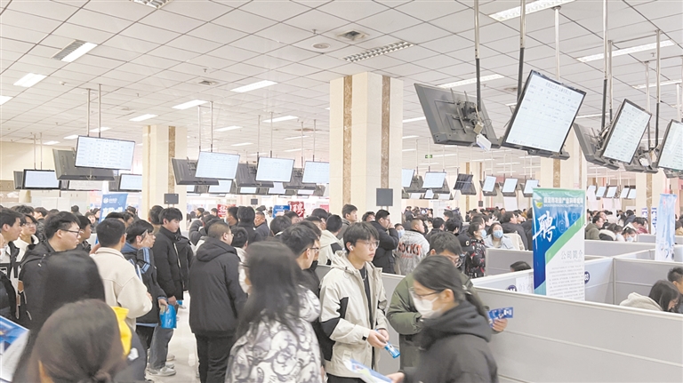 在招聘會現(xiàn)場,求職者絡(luò)繹不絕。馬聿璋攝