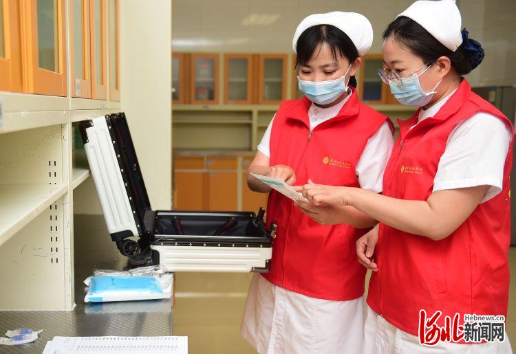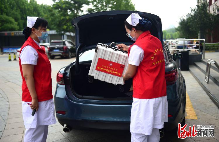 近日,滄州市人民醫(yī)院腫瘤院區(qū)的護士攜帶患者所需的醫(yī)療用品,準備上門護理服務。