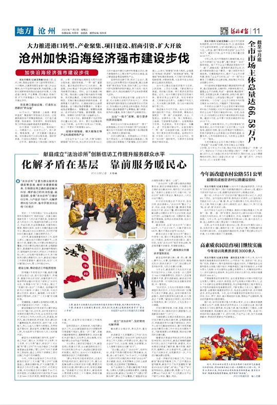 河北日?qǐng)?bào)訊(記者王雅楠)渤海之濱,運(yùn)河之畔。圍繞全面深入學(xué)習(xí)宣傳貫徹黨的二十大精神,認(rèn)真貫徹落實(shí)省委十屆三次全會(huì)精神,滄州市堅(jiān)持向海發(fā)展、向海圖強(qiáng),以國(guó)際化視野審視和推動(dòng)沿海經(jīng)濟(jì)發(fā)展,大力推進(jìn)港口轉(zhuǎn)型、產(chǎn)業(yè)聚集、項(xiàng)目建設(shè)、招商引資、擴(kuò)大開放等重點(diǎn)工作,加快沿海經(jīng)濟(jì)強(qiáng)市建設(shè)步伐。