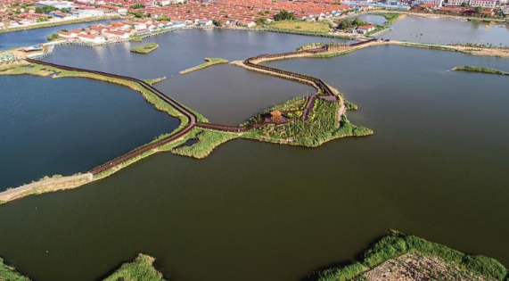 水系的周圍,除了豐富的本地樹種外,還有與濕地文化相融合的風(fēng)車、草亭、木棧橋等景觀設(shè)施。人們漫步木棧橋,坐船游湖,便可穿梭于蘆葦蕩中,十分愜意!斑@種濕地入園的綠化方式,既突出了黃驊的鄉(xiāng)土文化特色,又將節(jié)約型園林的理念融入其中,更是海綿城市建設(shè)的典型示范。”渤海新區(qū)黃驊市城管局負(fù)責(zé)人說(shuō),在黃驊市區(qū),還有地坤湖公園、春熙公園、濱河公園、海驊園等,都是通過(guò)“引濕地入園”的模式建設(shè)的,在市區(qū)外圍形成一道生態(tài)屏障,營(yíng)造出別具一格的城市園林風(fēng)貌。