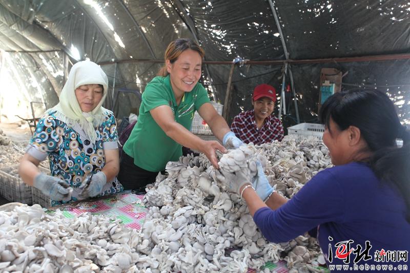 圍場在農村黨員中推行“1+X”聯(lián)戶制度,由黨員帶頭成立食用菌種植合作社,帶動群眾脫貧致富。這是近日工人在道壩子鄉(xiāng)食用菌種植基地分揀食用菌。 通訊員寧利勇攝