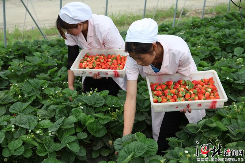 近年來,隆化縣推廣“黨支部+”模式,把黨組織建在產(chǎn)業(yè)鏈上,實現(xiàn)黨建與脫貧互促共贏。這是近日工人在七家鎮(zhèn)西道村草莓基地采摘草莓。 通訊員楊闊攝