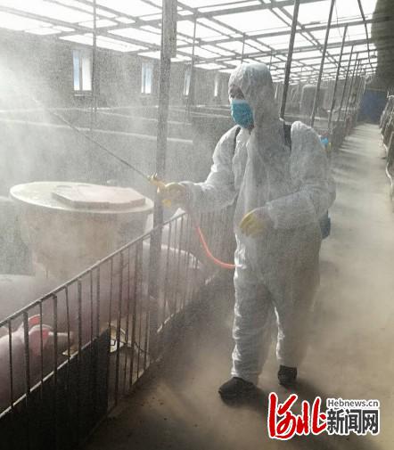 圖為工作人員在對(duì)養(yǎng)殖場(chǎng)進(jìn)行消毒。  承德市農(nóng)業(yè)農(nóng)村局供圖