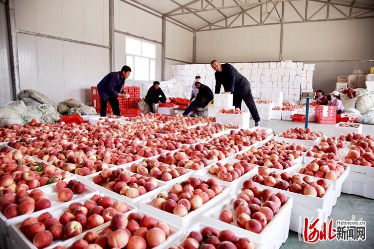 日前,位于承德豐寧滿族自治縣河?xùn)|村的榮達(dá)農(nóng)業(yè)公司桃園基地春雪蜜桃成熟,北京等地的訂單紛至沓來(lái),農(nóng)戶忙著裝箱。該基地流轉(zhuǎn)農(nóng)戶土地400畝,建設(shè)日光溫室128座,栽植春雪蜜桃5萬(wàn)株,年產(chǎn)值達(dá)800萬(wàn)元,帶動(dòng)300多名貧困群眾年人均增收5000元。 通訊員焦春江攝影報(bào)道