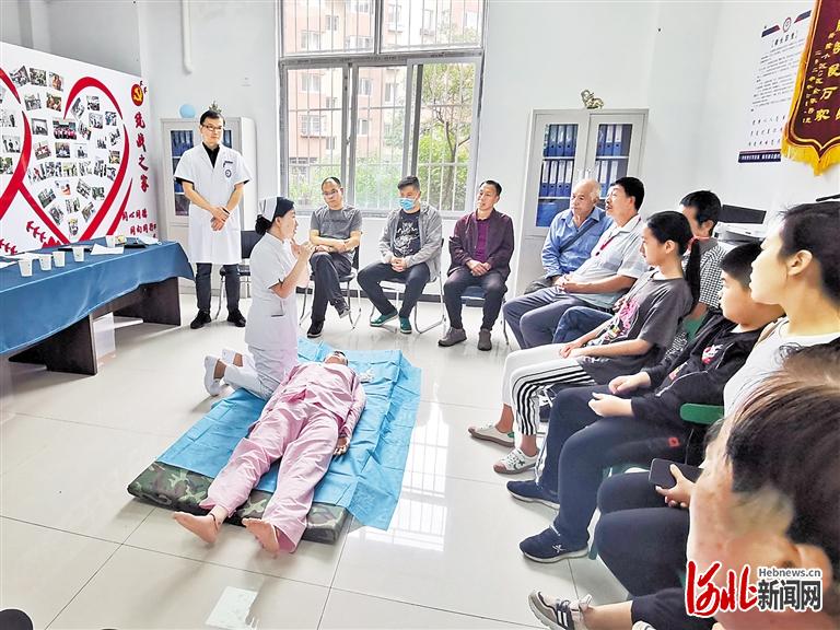 近日,第十三網(wǎng)格醫(yī)療服務(wù)隊(duì)在為居民講解急救知識(shí)。 河北日?qǐng)?bào)記者 陳寶云攝