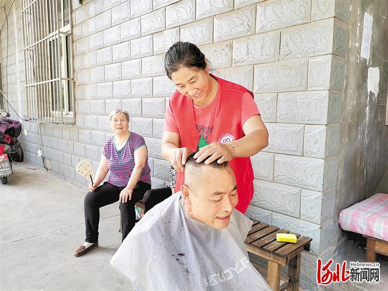 近日,第十三網(wǎng)格志愿服務(wù)隊(duì)隊(duì)員在為居民義務(wù)理發(fā)。 河北日?qǐng)?bào)通訊員 張梓煊攝