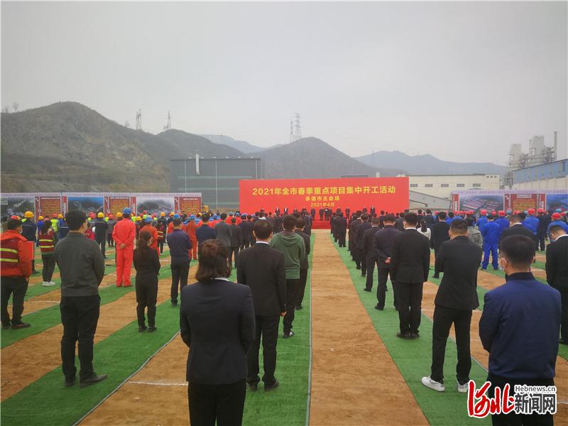 4月12日,承德市舉行2021年春季重點項目集中開工活動。此次集中開工的152個項目,總投資達到714.3億元,年預計投資187.3億元。圖為開工現(xiàn)場主會場。河北日報記者尉遲國利攝