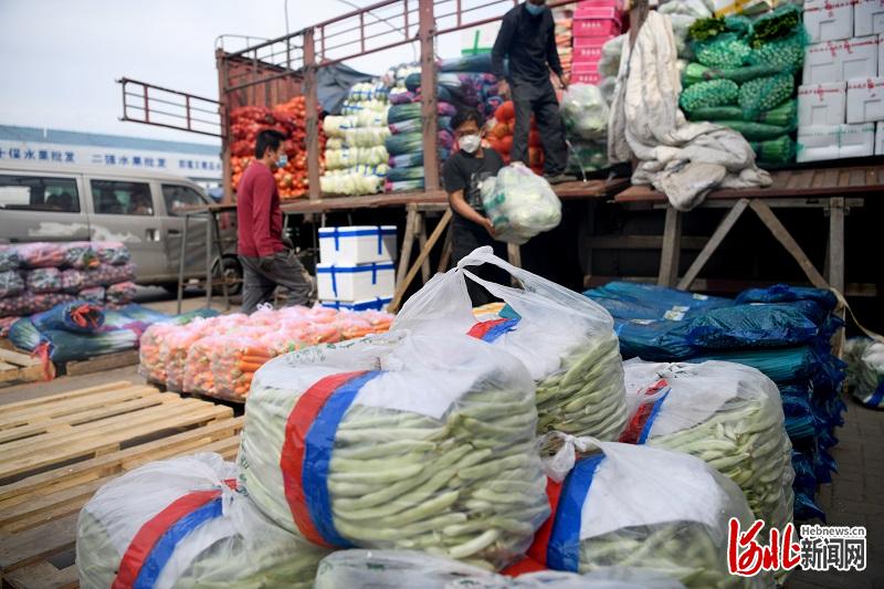 圖為承德果蔬批發(fā)市場商戶正在搬卸物資。