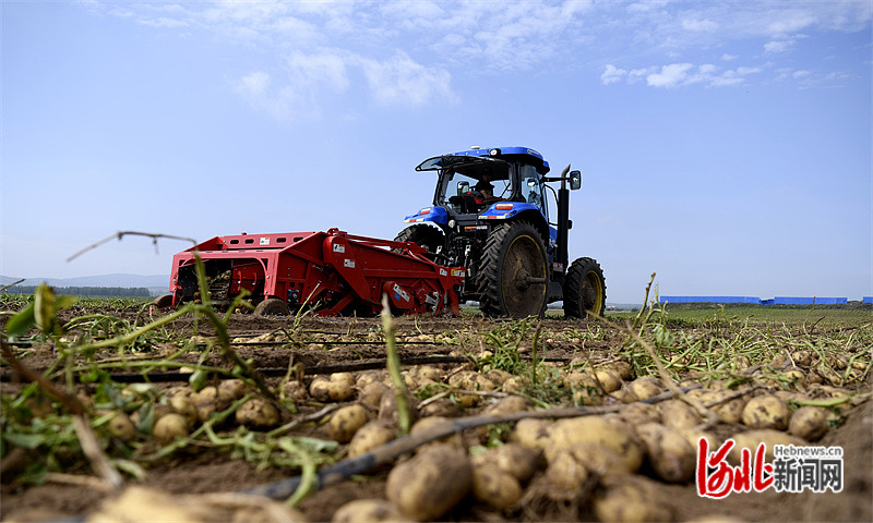 遭遇嚴重旱情,圍場馬鈴薯依靠科技賦能,實現(xiàn)豐產增收。圖為秋收時,馬鈴薯機械化收獲現(xiàn)場。河北日報通訊員王利群攝