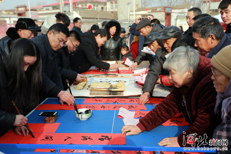 1月25日,邯鄲市直文化科技衛(wèi)生“三下鄉(xiāng)”集中服務(wù)活動(dòng)走進(jìn)魏縣。圖為邯鄲市文聯(lián)書法家為村民寫春聯(lián)。