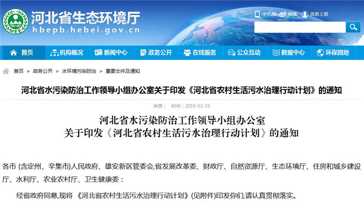 河北省生態(tài)環(huán)境廳網(wǎng)站截圖