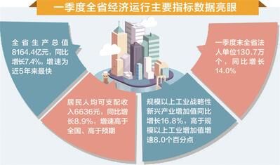 全省生產(chǎn)總值8164.4億元,同比增長7.4%,增速為近5年來最快;居民人均可支配收入6636元,同比增長8.9%,增速高于全國、高于預(yù)期;規(guī)模以上工業(yè)戰(zhàn)略性新興產(chǎn)業(yè)增加值同比增長16.8%,高于規(guī)模以上工業(yè)增加值增速8.0個百分點(diǎn);一季度末全省法人單位130.7萬個,同比增長14.0%……