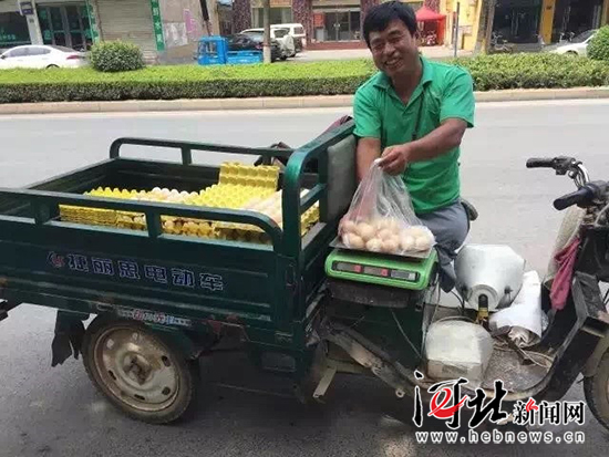 今天氣溫38度,無腿勵志雞蛋哥曹亮依然早晨七點準時出現(xiàn)在了廣平縣第一實驗小學門口賣雞蛋。自17年4月份開始,一年四季,走街串巷,風雨無阻。這樣的堅持對于一個正常人來講尚且辛苦,更何況是一個雙腿截肢的殘疾人。但是他靠自力更生,自強不息贏得了社會的尊重。