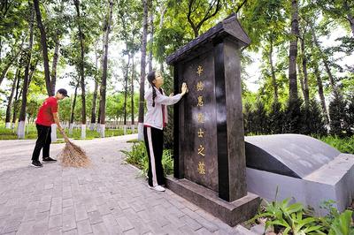 5月29日,在中國農(nóng)業(yè)大學(xué)曲周實(shí)驗(yàn)站,學(xué)生在辛德惠院士的墓碑前祭掃。 新華社記者 王 曉攝