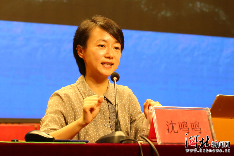 6月29日,河北衛(wèi)視《成語(yǔ)天下》節(jié)目開播慶典暨成語(yǔ)文化宣傳推廣月走進(jìn)邯鄲市致遠(yuǎn)中學(xué)。圖為同濟(jì)大學(xué)中文系講師沈鳴鳴做演講。
