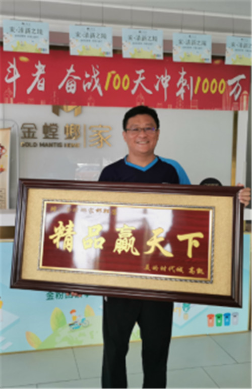 正當(dāng)活動(dòng)火熱進(jìn)行的同時(shí),金螳螂家邯鄲店收到了美的時(shí)代城高先生親自上門送的匾—“精品贏天下”。高先生在房子交付前兩年就與金螳螂家邯鄲店簽訂了施工合同,2019年2月份正式開工,交房的兩年期間,工作人員一直與高先生保持持續(xù)的溝通和交流,對(duì)于高先生的需求幾乎了如指掌,因此整個(gè)施工過(guò)程都很順利。工程交付時(shí),高先生非常滿意,尤其對(duì)比了鄰居家的工地后更是對(duì)金螳螂家邯鄲店贊譽(yù)有加。高先生送匾時(shí)坦言:“雖然這匾有點(diǎn)小貴,但是我覺得選擇金螳螂家裝修非常值,我非常高興”。zui后合影留念,鏡頭下記錄了高先生發(fā)自內(nèi)心的微笑。