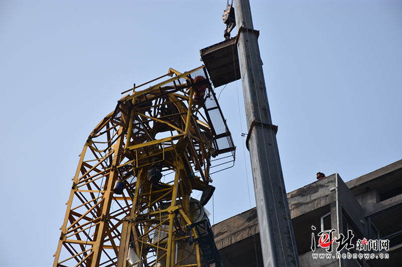 邯鄲:塔吊空中折斷工人被困40米高空 消防緊急聯(lián)合救援