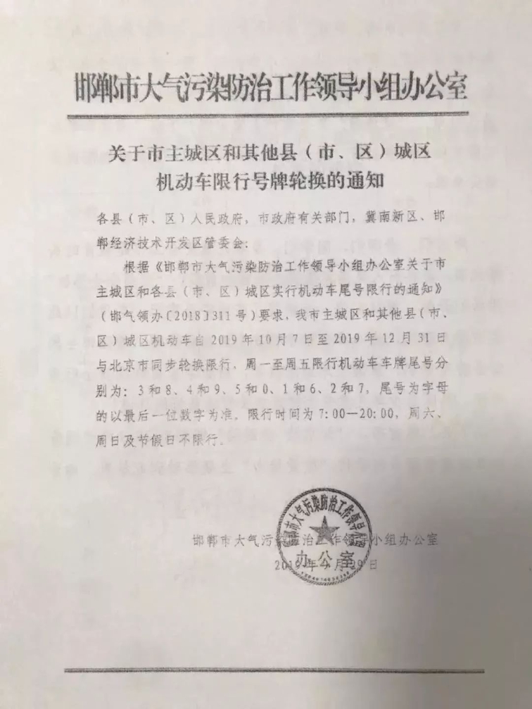 邯鄲市機(jī)動(dòng)車(chē)限行尾號(hào)輪換,10月8日起,執(zhí)行。上班第一天,周二(10月8日)限行尾號(hào)4和9。