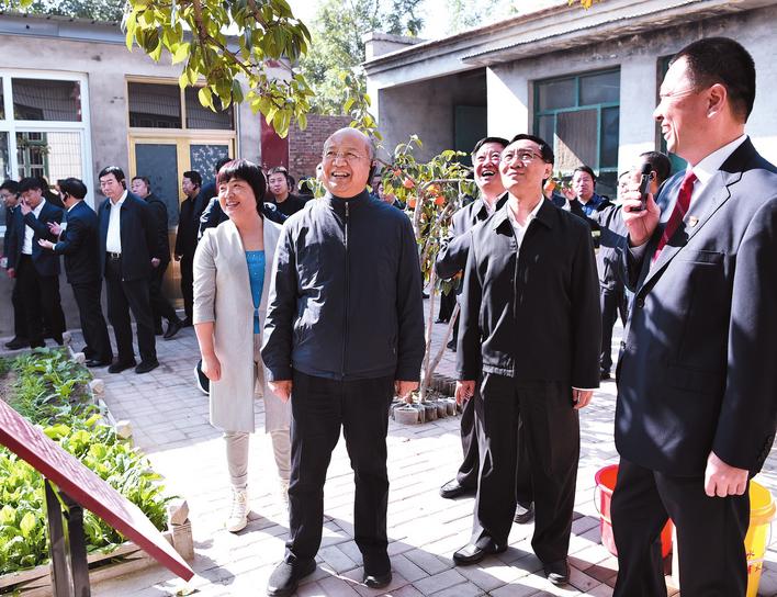 圖為市領(lǐng)導(dǎo)高宏志、張維亮等在邱縣新馬頭鎮(zhèn)新鮮莊村觀摩。 記者鞏玉強攝