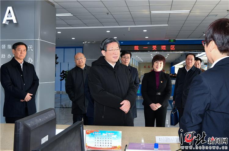11月28日,省委書記、省人大常委會主任王東峰在邯鄲市調研檢查。這是王東峰在邱縣行政審批局認真查看各項行政審批流程,廣泛聽取辦事群眾意見建議。 記者趙威攝