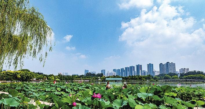 近年來,邯鄲堅持綠色發(fā)展,加大環(huán)境治理力度,藍天白云天數(shù)越來越多。圖為龍湖公園 一景。(資料片) 邯報融媒體記者李嘯攝