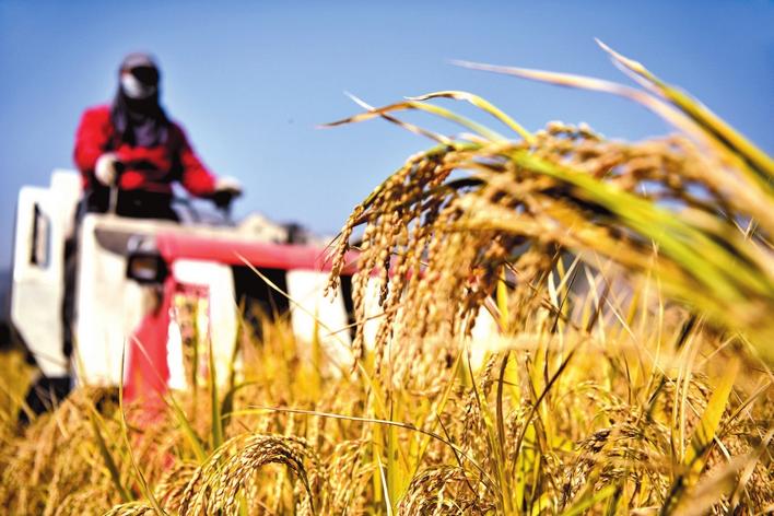 近日,涉縣清漳河兩岸水稻逐漸成熟,鄉(xiāng)間田野一片金黃,當(dāng)?shù)剞r(nóng)民搶抓時節(jié) 收獲水稻,田間地頭一片繁忙景象。 申瑞華攝
