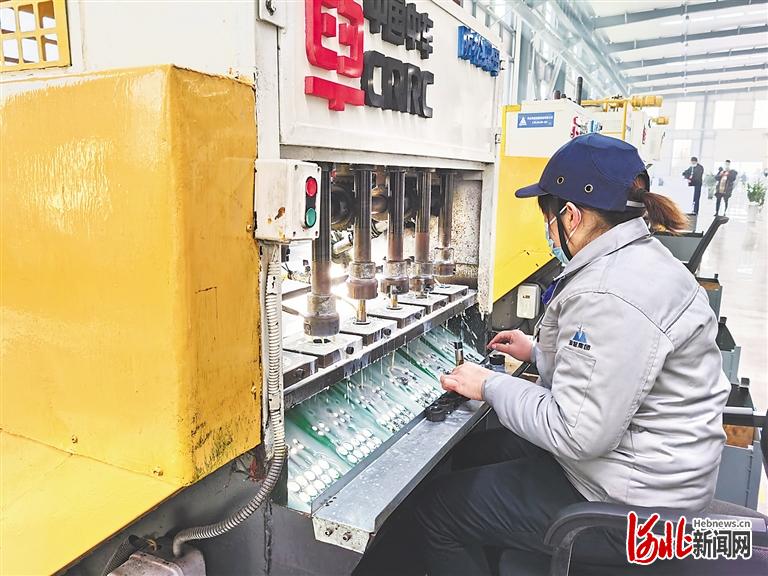 12月22日,在位于魏縣的中車產(chǎn)業(yè)扶貧示范項目車間,工人在生產(chǎn)防松螺母。 河北日報記者梁韶輝攝