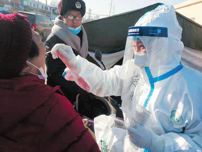 1月6日下午5時,雞澤縣醫(yī)院接到上級通知后,立即組建20名護(hù)理人員組成的支援隊(duì)伍赴邢臺市南和區(qū)三召鄉(xiāng)開展采樣工作。隊(duì)員們晚7時抵達(dá)當(dāng)?shù)睾,立即分赴各采樣點(diǎn)開展工作。經(jīng)過一夜一天的奮戰(zhàn),隊(duì)員們先后到20個采樣點(diǎn),完成采樣16436人次。除了戶外集中采樣,醫(yī)務(wù)人員對一些行動不便的老人、產(chǎn)婦和嬰兒,還上門完成采樣工作。