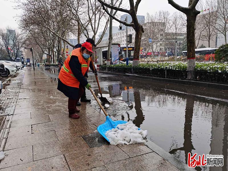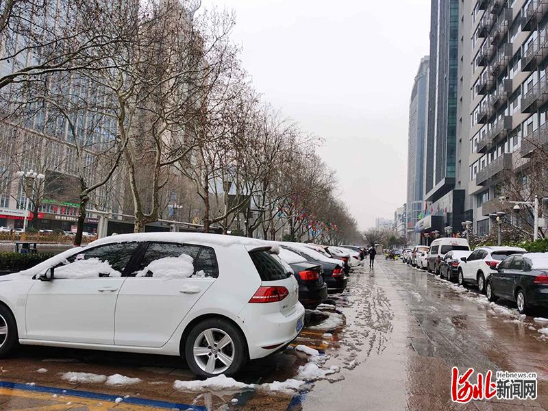 2月25日早上,路面上的雪已經(jīng)化成了水。 河北日?qǐng)?bào)記者喬賓娟攝