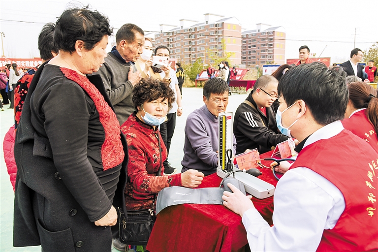 4月16日,肥鄉(xiāng)區(qū)中心醫(yī)院“講黨史、辦實事、心連心、惠民幫幫團”志愿服務(wù)小分隊在肥鄉(xiāng)鎮(zhèn)北西落堡村廣場給群眾義診。邯鄲市委宣傳部供圖