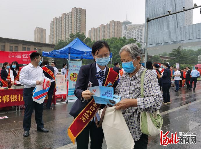 圖為金融機(jī)構(gòu)工作人員在向市民發(fā)放宣傳資料。 河北日?qǐng)?bào)記者喬賓娟攝