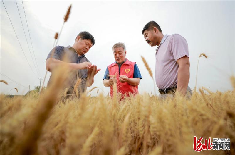 6月10日,肥鄉(xiāng)區(qū)農(nóng)技服務(wù)志愿者(中)走進(jìn)該區(qū)元固鎮(zhèn)西屯莊村田間地頭,開(kāi)展技術(shù)服務(wù)。 河北日?qǐng)?bào)通訊員薛建東攝