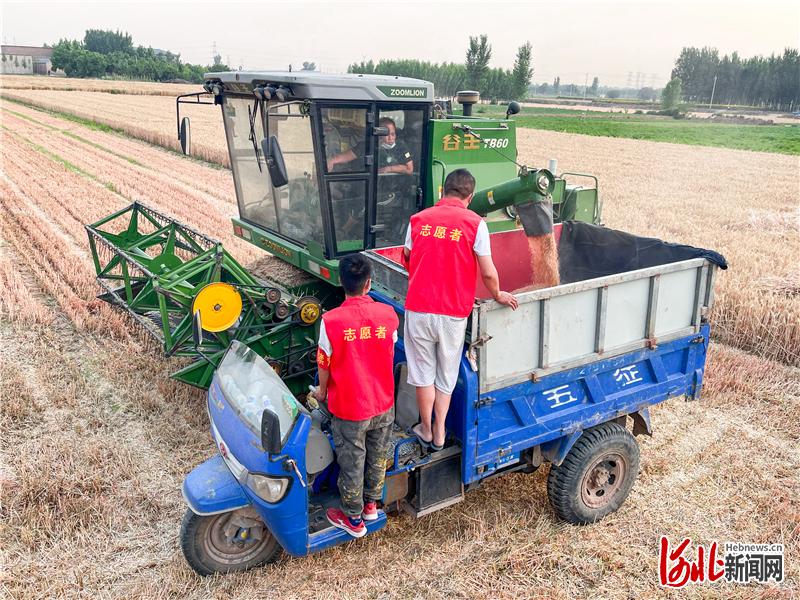 近日,冀南新區(qū)“三夏”志愿服務(wù)隊(duì)為農(nóng)民進(jìn)行代收服務(wù)。河北日?qǐng)?bào)通訊員朱麗君攝