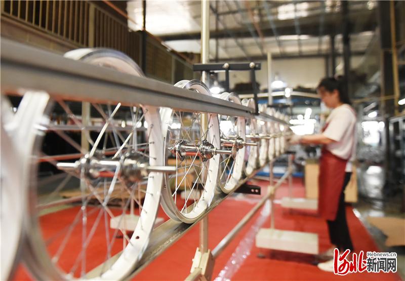 在曲周縣億航童車有限公司生產(chǎn)車間,工人在生產(chǎn)線上工作。河北日報記者史晟全攝